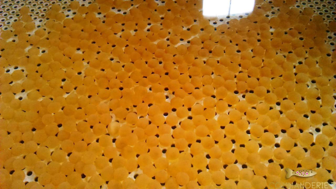 Es braucht etwa 40 Tage, bis der Laich ausschlüft ; die Jungfische bleiben dann noch einige Monate im « Aufzucht-Becken”, bevor sie in unsere Teiche gesetzt werden.