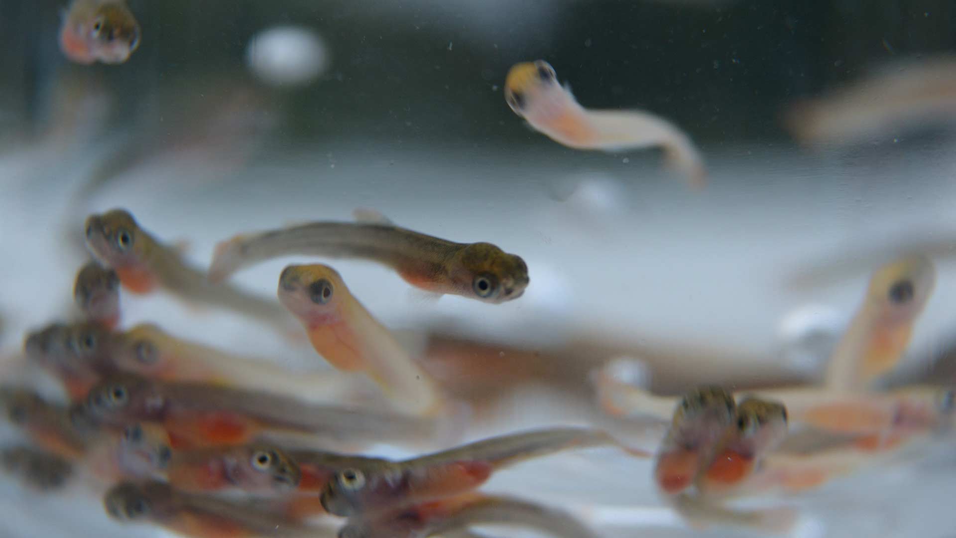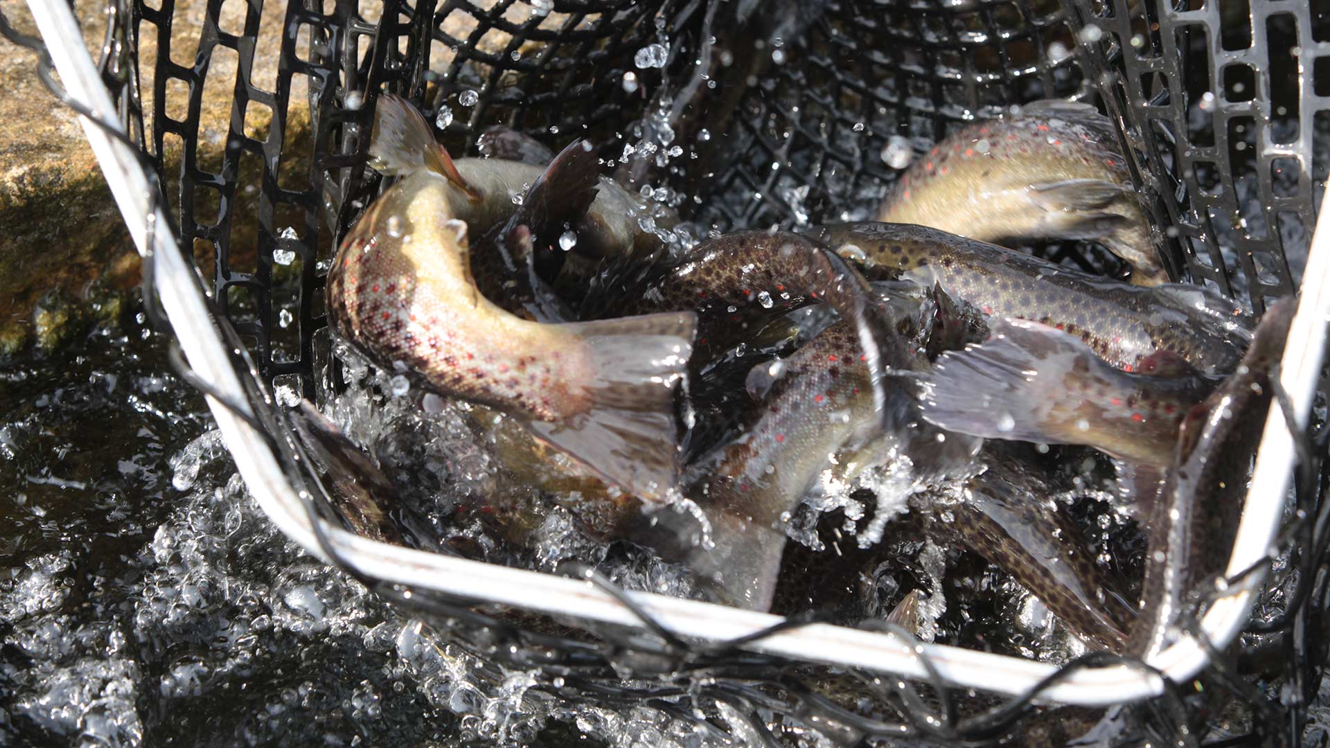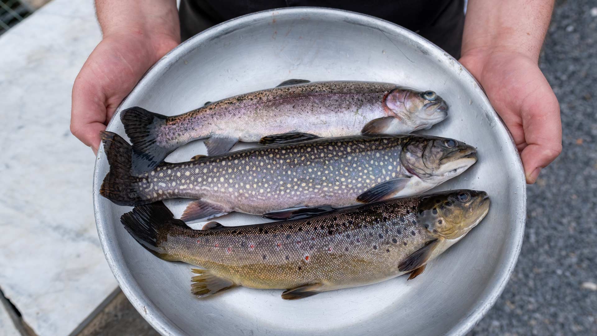 Die meisten Zuchtfische sind Regenbogenforellen und Bachforellen.