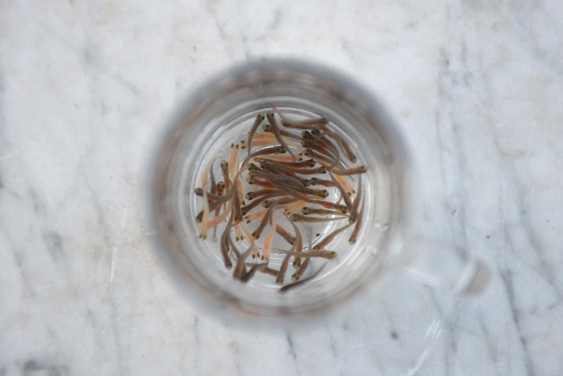 Die Befruchtung erfolgt immer noch nach alter Methode : man mischt den Laich und die Spermien unseren Fische mit Gänsefedern.