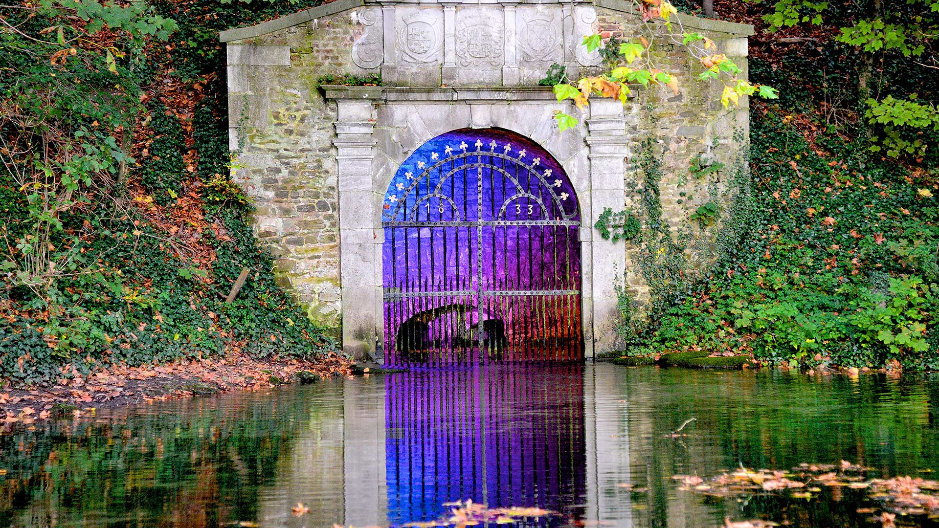 Das Wasser durchquert die Teiche und Schlossgräben im Park des Schlosses und wird hinter dem Grundsfück der Fluss “Voer”, bis zur Mundüng in die Maas, 12 Km weiter bei Eijsden