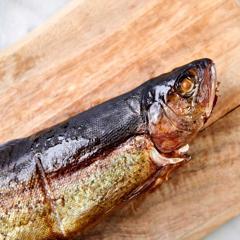 Fumée avec la sciure de chêne et hêtre pour la puissance de goût sachant que la peau fait office de filtre et ne laissera passer que le bon goût de la fumaison.