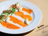 Filets de grosse truite arc-en-ciel mariné à sec dans un mélange de sel, sucre, citron et aneth.