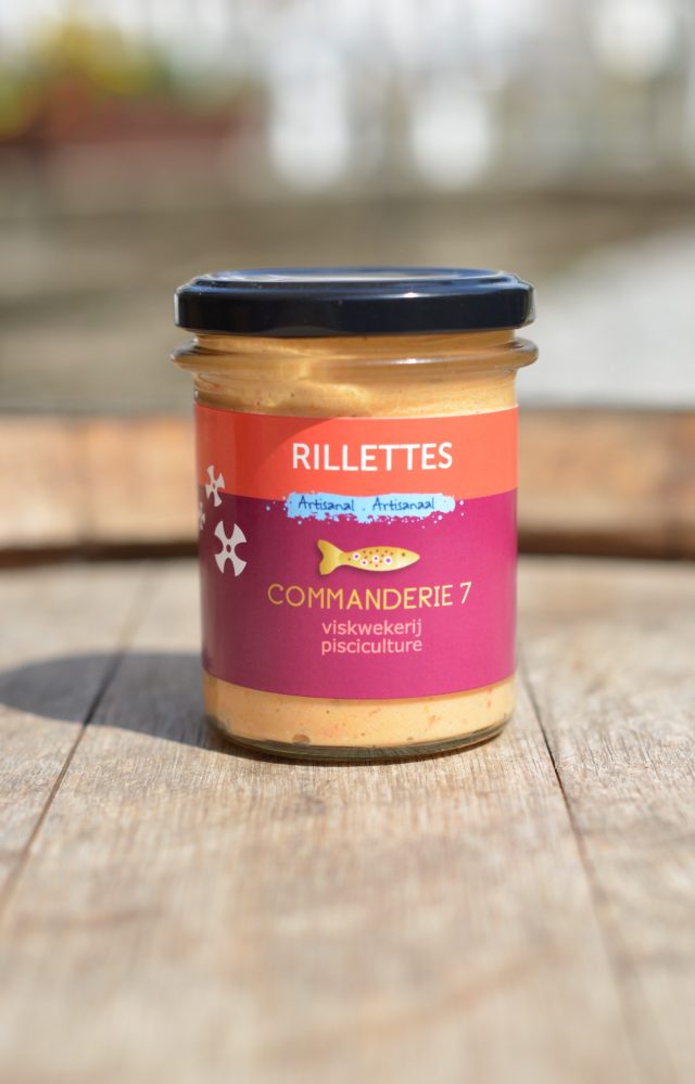 La rillette de truite est réalisée avec de la chair de truite cuite au court-bouillon, de la chair de truite fumée à chaud. Elle est crémée et tomatée ainsi que de légumes frais qui donne à cette préparation un petit côté provençal.