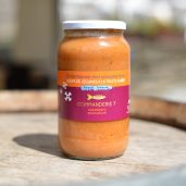 Soupe de légumes à la truite fumée, préparée avec les truites de la pisciculture.